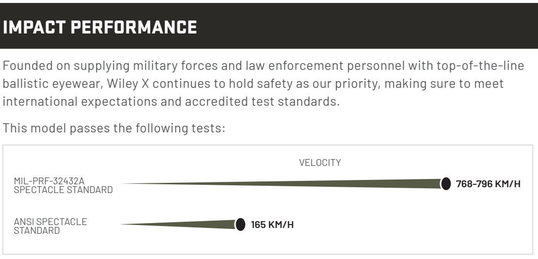 לעמוד בדרישות אלו, Wiley X משתמשת בעדשות Selenite™ בלתי שבירות ובמסגרות Triloid Nylon מתקדמות – חומרים שנבחרו במיוחד בזכות יחס גבוה בין חוזק למשקל.